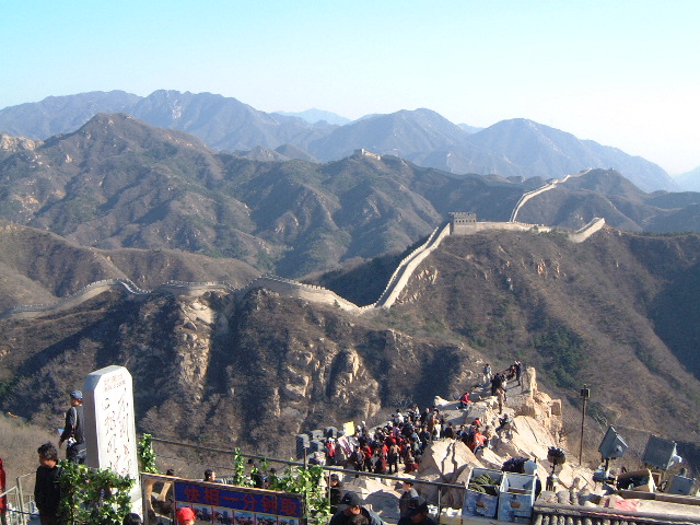 私が最高に感動したのは、北京で見た、万里の長城です、幅10メートルくらいで、山の尾根伝いに道がどこまでも見えなくなるまで、繋がっています、素晴らしいです、感激しました。天安門広場も壮観ですね。